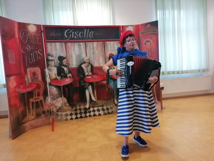 Die Überraschung des Abends war ein Auftritt von „Madame Gisella“, die uns mit französischen Chansons gesungen und auf dem Akkordeon begleitet, erfreute. Sie spielte die schönen Musettewalzer und wir durften sogar mitsingen. Bei einem kleinen Adendsnack in gemütlicher Runde klang der schöne Tag aus.
