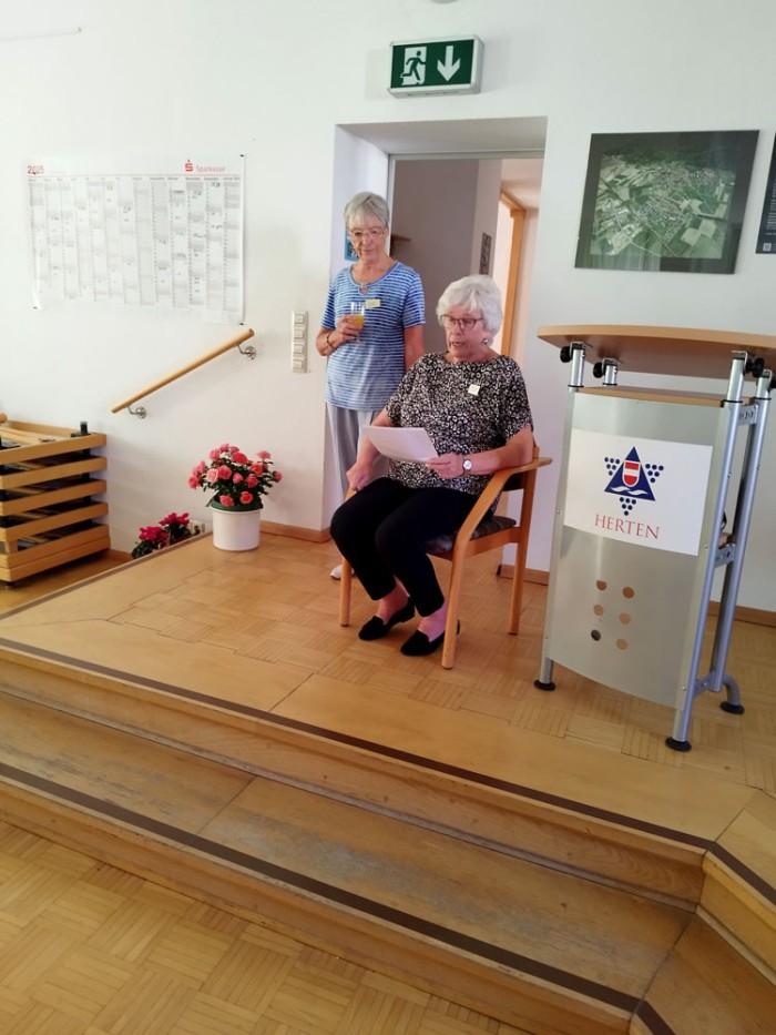 Eine kleine, feine Jubiläumsfeier konnten wir im Sitzungssaal der Ortsverwaltung in Herten erleben. Am Vormittag hatten wir zu einem Sektempfang mit Speckgugelhupf und Hefezopf geladen. Das Spieldorf Herten sorgte für die Bewirtung der Gäste. In freundschaftlicher, erspannter Atmosphäre wurden die aktiven und ehemaligen Mitarbeitenden der Pfalzergruppe begrüßt. Zu den Gratulanten gehörten Frau Bürgermeisterin Kristin Fuchs, die uns mit einem persönlichen Geschenk überraschte. Es waren selbstgegossene, hübsch verpackte Engelchen für jeden einen. Unser Ortsvorsteher Matthias Reiske brachte Sonnenblumen mit, so wie auch manche der Gratulanten Blumen mitbrachten, einen Geschenkkorb gab es ebenfalls. Über besondere Geschenke für die Gruppe können wir uns freuen. So dürfen wir eine Rikschafahrt machen, im Cafe Grenzenlos einkehren und uns in der Tüllinger Höhe zu einem Besuch mit Verköstigung einfinden. Es gab einige Ansprachen, die die Dankbarkeit und Wertschätzung für unsere geleistete Arbeit zum Ausdruck brachten. Vor allem diese langjährige Begleitung mit Spenden, auf die sich die einzelnen Gruppierungen bis heute verlassen können, ist ein wertvoller Beitrag für die Menschen in unserer Region.